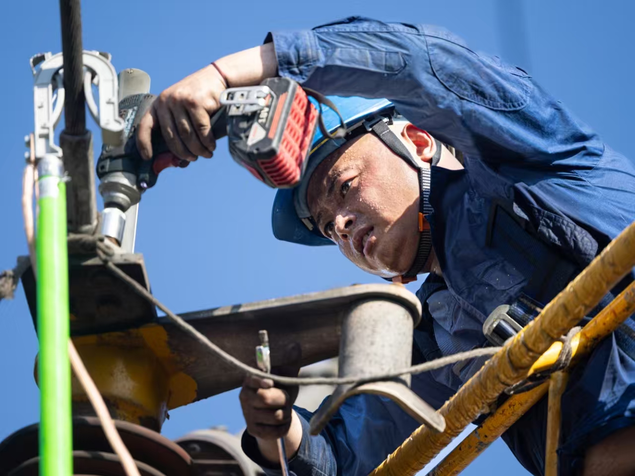 8月4日,国网雅安供电职工在高温天气下责罚开导故障。(曹颀 摄)