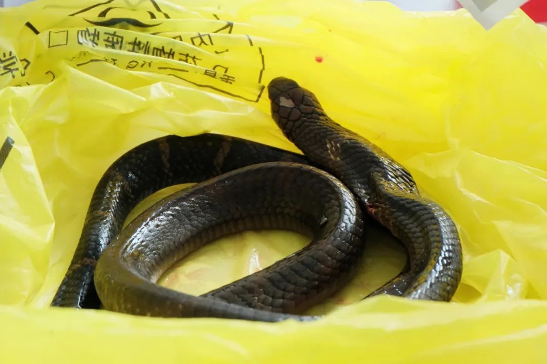 王娅默示,无为有被咬伤的患者带着蛇来就医,但眼镜王蛇如故第一次。过后测量该蛇长度达2.2米。
